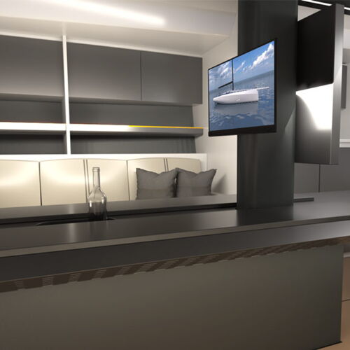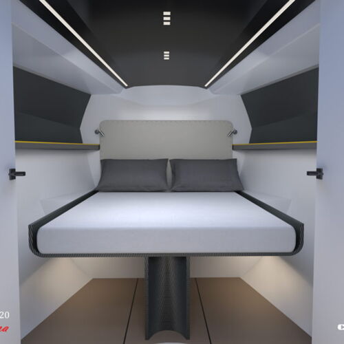 - ein reiner Rennboot, ohne dabei den notwendigen Platz und die Ausrüstung zu verlieren, die eine nicht vollprofessionelle Hochseemannschaft benötigt, um an Bord zu leben, wobei der Komfort für die Grundbedürfnisse (Essen, Schlafen, Toilettengang) erhalten bleibt, aber gleichzeitig die Leistung optimiert wird.