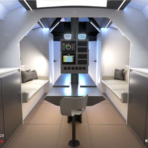 - ein reiner Rennboot, ohne dabei den notwendigen Platz und die Ausrüstung zu verlieren, die eine nicht vollprofessionelle Hochseemannschaft benötigt, um an Bord zu leben, wobei der Komfort für die Grundbedürfnisse (Essen, Schlafen, Toilettengang) erhalten bleibt, aber gleichzeitig die Leistung optimiert wird.